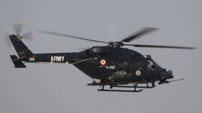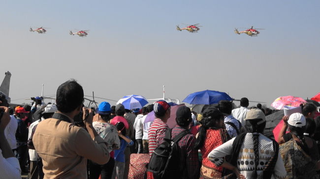インド空軍は実はヘリのアクロチームも持っています。一見、BK117に見えますが、国産ヘリです。サラング。クジャクです。