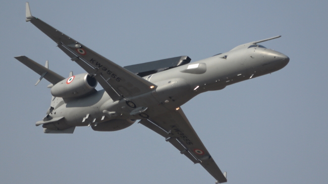 これが飛んでいるところを見られるとは思いませんでした。インドの新早期警戒機DRDO AEW&CSです。アンテナだらけ。
