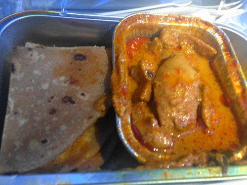 さあ、天竺目指してレッツゴー!!最後のフライト、機内食はいよいよインドらしく!カレーだー!!