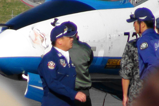整備さんや他のパイロットさん、隊長さんも一応確認。みんな興味津々でした。何はともあれ、大事に至らなくて良かったです^^ そして隊員のみなさん、意外にニコニコと機体を観察したりしてるので、ハラハラしてたこっちもほっと一安心。三沢のときもみんなで記念撮影してたもんなあ。(笑)