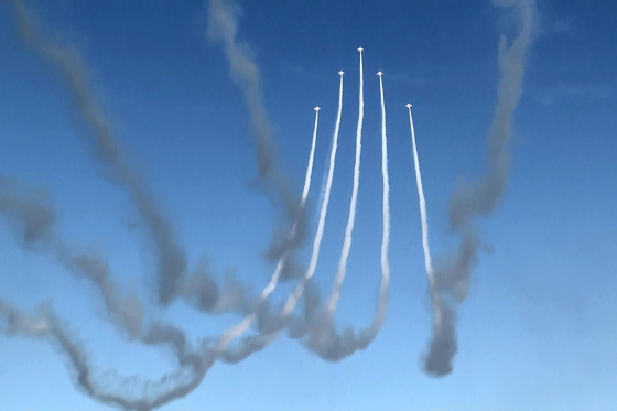 この後、「軽微な故障」が発生し、しばらく演技は中断。編隊が対処している間も、通常の飛行には全く問題ありません、と何度もアナウンスがありました。