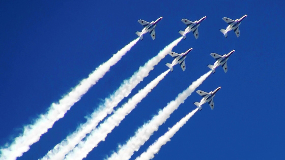 ブルーインパルスのフライトの中でも特に好きなシーンです^^ それにしても空が綺麗ですね☆ って、☆はまだ早い;;