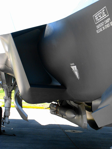 なんちゅうんだっけ、ほら、このタイプのエアインテーク。コブ取りじいさん?下のウェポンベイからAIM-120が覗いてます。