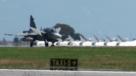 そして!リストに無かったグリペン登場!バーズの列線を背景に。カナードを立てて減速するんですね。