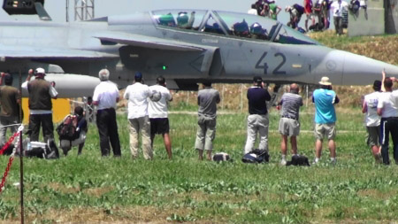 MiG-29到着!当初はデモ予定もあったのですが、地上展示のみに。でも見れたんだから、ラッキー!