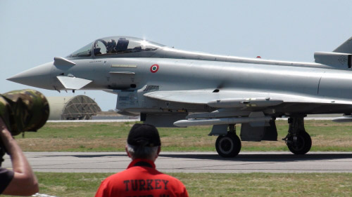 そしてタイフーン到着!!実はこれが空に現れとき、トルコ空軍のおっちゃんに話しかけられてて撮れませんでした。結局翌日は時間切れで最後のタイフーンのデモがキャンセル、日曜日は見なかったので、このエアショーでタイフーンが飛んでる姿を撮れませんでした。。。そのときはRIATに出てくると思うしまあ良いかーとか思ってたんですが、、、RIATでは今年は飛ばない模様。やらかした。今年はタイフーンのデモが見られない可能性が高くなった・・・このとき見ておかなかったのを後悔です。やっぱり、見られるものは見ておくべきですね。。。2005年から続けてるタイフーン鑑賞、6年で途切れました。。。いいんだ、F-Xで入ってきてくれれば!(違;;)