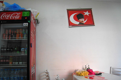 さ、そんなこんなで落ち着いたらお腹すいた。なんかトルコっぽいもの。。。と思って。小さなお店に入ってみた。お。アタテュルク。ここにもいたか。トルコ人はみんな彼を尊敬しています。