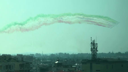 なんとフレッチェがホテルの真上を掠めてリハーサルスタート。寝られねえ。。。環境悪すぎ!(爆笑) 距離はだいぶ遠いけど、しかりばっちり撮影です。。。世界最高峰のアクロチームがあそこで飛んでるのに、撮れないこのもどかしさ。。。そしてBGMの代わりは。。。街中に大音量で流れ始めたコーラン。。。(笑)