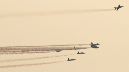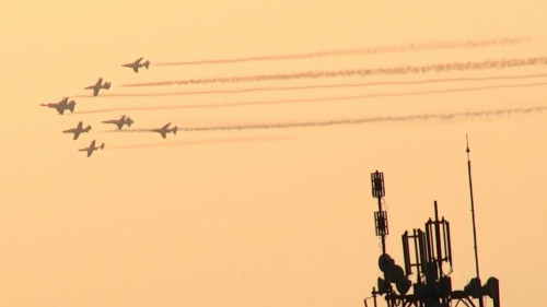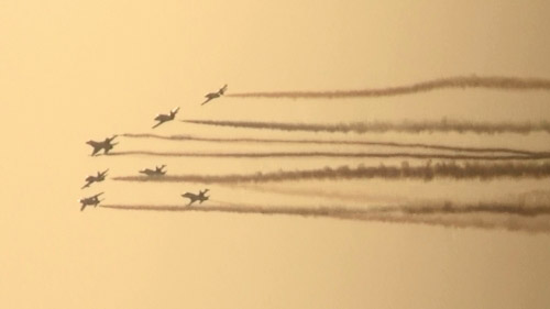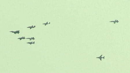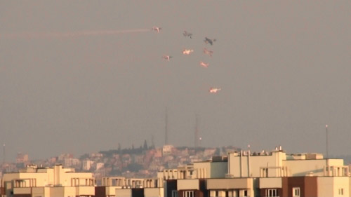 きたきた!旋回してきた!!よく見るとトルコも2機参加しています。空撮してたんでしょうね。(^▽^