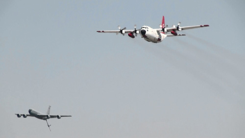 ほら、来た。あっちにいるのはKC-135。よくまあ、これだけの機種を飛ばしますね。なかなかの運用能力があるようでう。