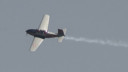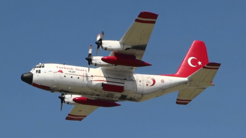T-34のデモフライト開始です。トルコ空軍でかつて初等練習機として使われていたのでしょうね、なんか、大切にされていました。会場がめっちゃ広いから何処で見ようか迷う迷う。人が薄い場所もあるけど、そこだとショーセンターから外れていたり。なかなかうまくいきません。