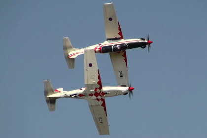 さあ、さっそくですが、アクロチーム行ってましょう!トップバッターは最近、活動が活発なクリラオルイェです。クロアチア空軍です。