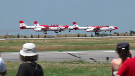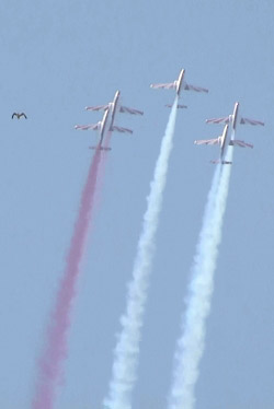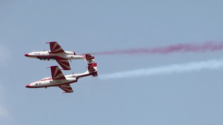 赤白スモーク。機体も赤白。国旗の色に併せてるんでしょうね。トルコも全く同じやり方です。赤白で。赤白の国って意外に多いですよね。あ!日本もそうじゃん。。。ブルーインパルスの塗装を芦屋T-4のにしちゃえば、、、いや、だめだめ。(笑