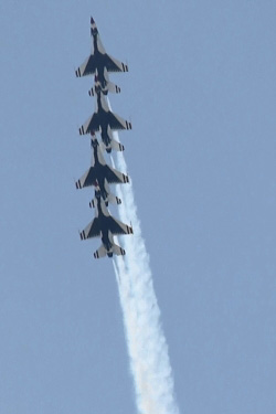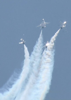 それにしてもこの日は湿度が高かったですからね、F-16がすんごいベイパーを発生させて大迫力のショーでした。