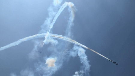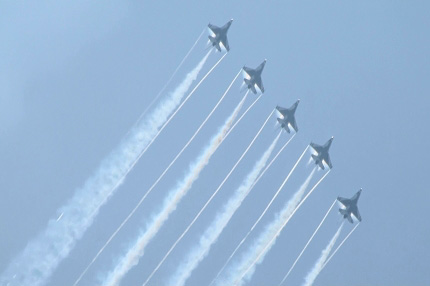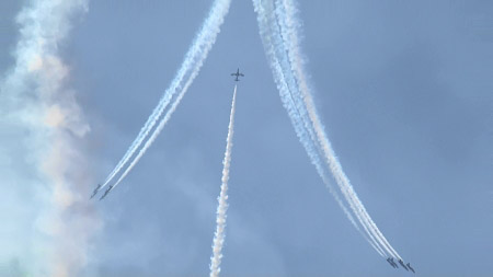 はい、皆さんが編隊に見とれています!すでに向こうからソロが突進して来ています!