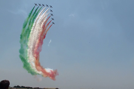 F-16の圧倒的な機体性能で押し切るサンダーバーズとは対照的に、能力的には苦しいMB-339なんて機種を使いながらも緻密な構成と発想で魅せるフレッチェトリコローリ、まったく性格の違うフライトはなかなか面白いです。