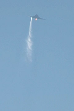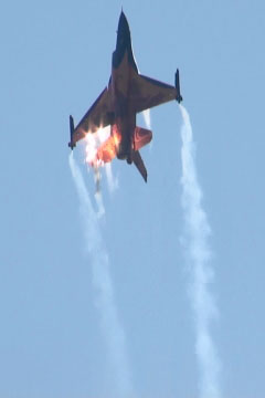 上空にフレアを撒きながら、思いっきり捻りこんでます。