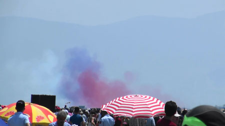 さああ!いよいよ出てきますよ、今日の主役!トルコ空軍アクロチーム、ターキッシュスターズ/タークイルディズラリです!トルコインパルスじゃないっすよ(笑 さすがに大人気、みんな思い切り手を振りまし。行ってらっしゃい!(*^ー^*)