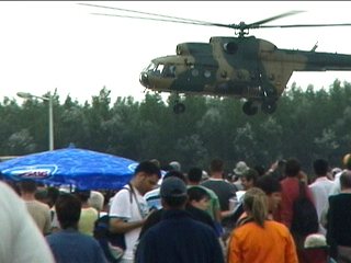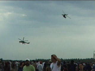 ヘリコプターがたくさん飛びました。まさにコンバットレスキューと言う感じです。でも、1機が凄い勢いできて凄い勢いで要救難者(←使ってみました・笑)をピックアップしていくアメリカ系のそれとは違う。レスキューの機体の周りをMi-24が援護します。かっこよかったけど、この気味悪いヘリが上空で威嚇してたら怖いです。