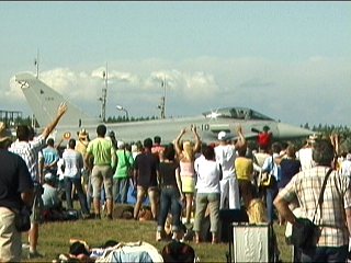 F-16のデモもそうだけど、アメリカとヨーロッパでは見せ方がぜんぜん違います。18も、パワーで押すアメリカ、優雅に魅せるヨーロッパという図式が見事に当てはまります。