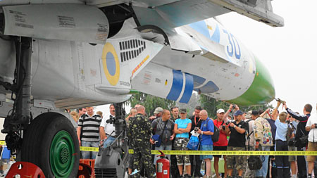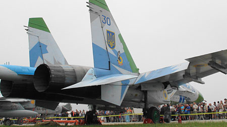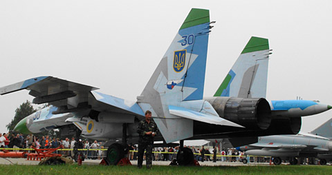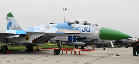 うわ!出た!!やっぱりフランカーはでっかいです。ウクライナ空軍から。デモフライトを期待しましたが今回は地上展示のみ。まーいーか。それにしてもちょっとギザギザな迷彩がかっちょいいです。