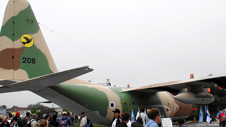 C-130にはけっこう可愛いマークが付いています。かつて、イスラエル空軍は厳しくて、撮影したフィルムもチェックされ部隊マークに針で穴を開けられたりしたと雑誌で読んだことがありますが、時代は変わったってことでしょうか。こんなに一般マニアがたくさん来るエアショーで堂々と公開、しかも翌日には機内まで入れました。貴重な経験をしました。