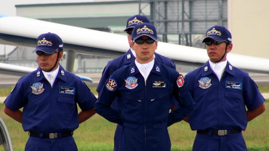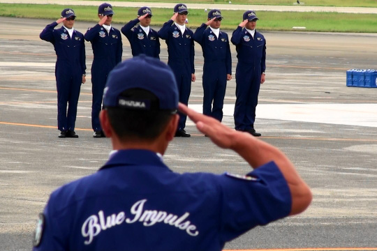 | 私だいすき、航空学生のドリルです!!今年もやってくれました! ブルーインパルスの出発時間に微妙に重なるため、どっちを見ようか迷いました。。。 迷いましたが、、、私はドリルもブルーと同じぐらい好きなので、、、こっちを取りました(*^ー^*) 相変わらず立派やねえ。 それにしてもひな壇の下にご注目。一日基地司令の憲俊さんの追っかけ(死語?)と |