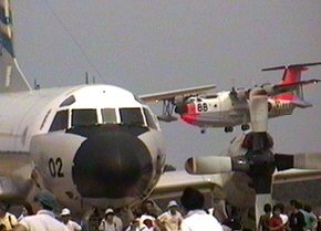 海自2機種。地上展示のP-3Cと飛来したUS-1。せめてろーパスしてくれればいいのに。