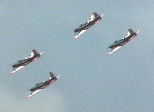 クルクルと会場上空を旋回したT−3ダイアモンド編隊がブレイクします!