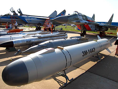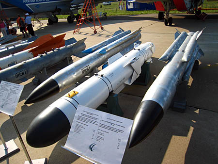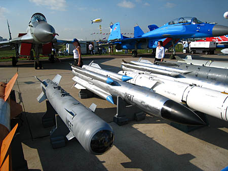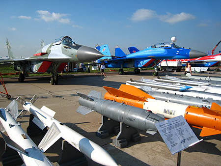 いろんな種類。ロシアはミサイル王国ですね。その後ろにはMiG-29のみなさんがたくさん。