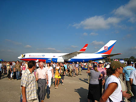 カナードも付いてるんですね。嬉しそうです(笑) フランカーの前は物凄い人だかり。MiG-29シリーズよりずっと多かったです。ちょっと撮るためだけにでも最前列に出ることはできませんでした…。信じられん。モスクワまで行ってフランカーをマトモに見て来れなかったなんて…日本の航空祭でラプターが展示されたらこんなことになるんだろうな、と想像できました。あ。日本は展示機の前でもシート拡げて場所取りするからちょっと違うか。