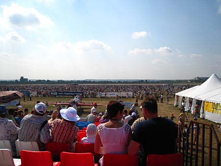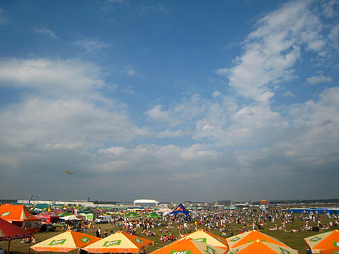 会場後方風景。遙か遠くまで続いてます。私の知る限り世界最大級のエアショー会場です…。入り口とかめっちゃ遠いもん!