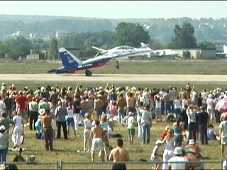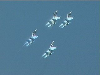 4機でアクロを見せてくれます。ロシアにはたくさんアクロ飛行チームがいます。すごいな。