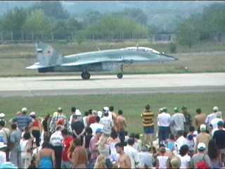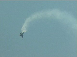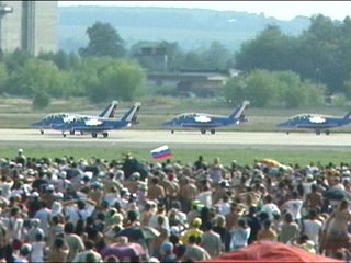 もう食傷してまーす。小さいの飛んでても見てませーん。ごめんね。あ、でも、スタンドにいたらエアロバティックなスタッフの姉ちゃんがパンフレット持ってきてくれたよ!ロシア語で「ありがとう」って言ったらすんごいニコっとしてくれました。ロシアの姉ちゃん美人すぎ。もう、浮気しそうになったよ。ニコルちゃんには内緒ね。(笑)