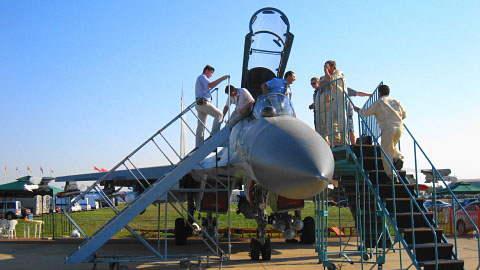 あ、いいなあ。フランカーのコクピットに座ってみたいなあ。F-15でさえ2階に上ったような高さを感じるんだから、フランカーもまたしかり、でしょうね。