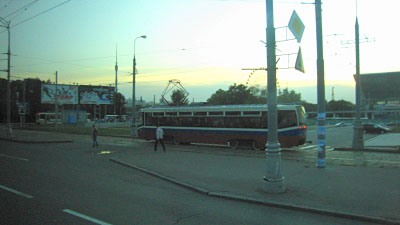 帰りのバスから見た風景。トロリーみたいな?市電みたいな??なんか走っています。