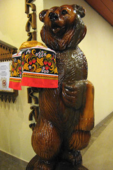 7時からホテルのレストランでバイキング。別にロシア料理があるわけではない。普通でござる。でも美味しくいただきました。クマちゃんだし。