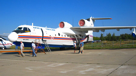べーです、べー。Be-200.水にも降りちゃう飛行艇です。しかもご覧の通りジェット機。この日、散水デモも見せてくれました。