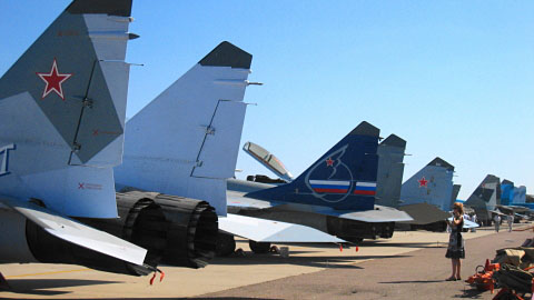 MiG-35。4年前に来た時からすでに新商品のようにアピールされていますが、売れたのかな?インドとか。。。