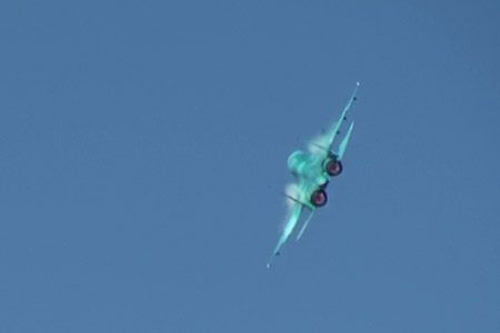 それにしても、こういう機動ってどれほどの意味があるのでしょう。フランカー登場時から「空戦には役立たない」とか「これができる信頼性は、大きい意味がある」とか、いろいろ言われてきました。