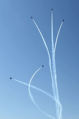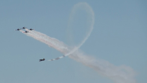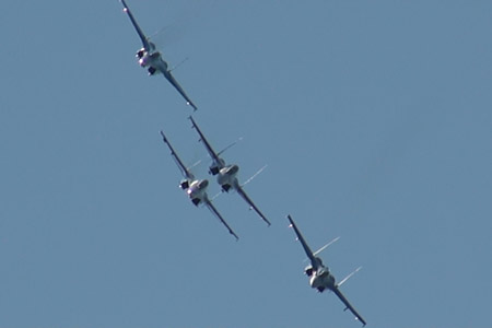 Falconsです!軽く編隊アクロもしますが、どちらかというと2vs2に分かれた模擬空戦を見せるチームです。