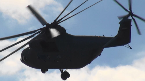 ロシア国旗風の頭になってるねえちゃんがいる。違うか。ヘリコプターがたくさん来ました。