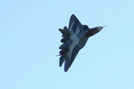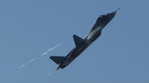はい、PAK-FA/T-50の続きねー。このヒコーキ、垂直尾翼全体が動きます。不思議です。こりゃまたスホーイお得意の異常機動を見られそうです。