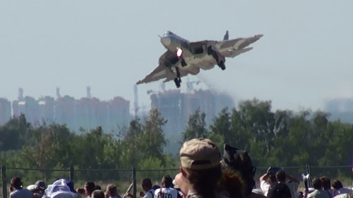 あゴメン、これ、前日の画像(^ー^;) だってこういう姿勢の画像載せるの忘れたんだもん;;ちなみに前の日のフライトはPAK-FA×2機の編隊もありました!動画でどうぞ♪