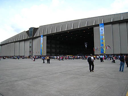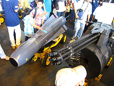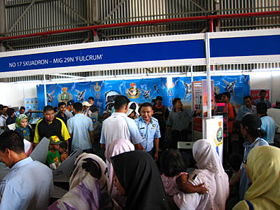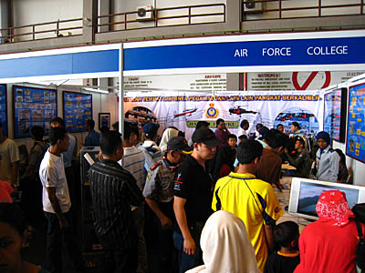 はい、問題の、もとい、その空軍大学のブースです。一番奥の奥の一番奥にミシェル嬢が小さく小さく写っています。ヘルメット体験のお手伝いしてた。それがどうしたといわれたら答えられません。(笑)