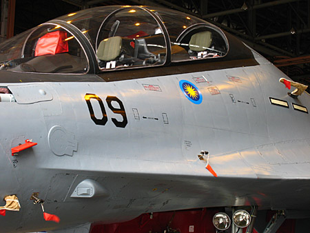さてさて。よく見てください。各種コーションマークが英語で書かれています。フランカーなのに英語…旧ソ連時代なら考えられないことだよなあ。Su-30MKMってけっこう西側仕様になってるんでしたっけ?