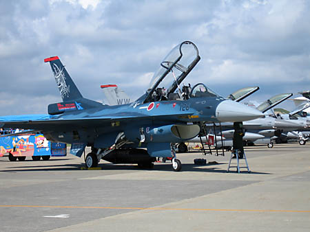 オープニングフライバイから戻ってきたF-2が展示エリアに出てきました。これは21Sq30周年スペシャルマーキング機です。F-2もHUDが大きいですね!