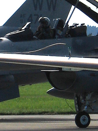 思いっ切りトリミングしてるので荒れまくってますが、F-16のパイロットは新しいヘルメットでしたね!