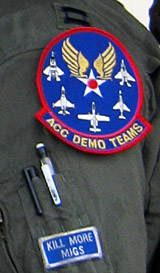 ところで後ろに写ってるヒトもパイロットさん??ACCデモチーム各種のパッチを貼ってます。