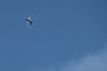 この日も千歳と同じくアクロ課目を含まない編隊連携機動飛行でしたが、随所に工夫のあるスリリングなフライトでした。